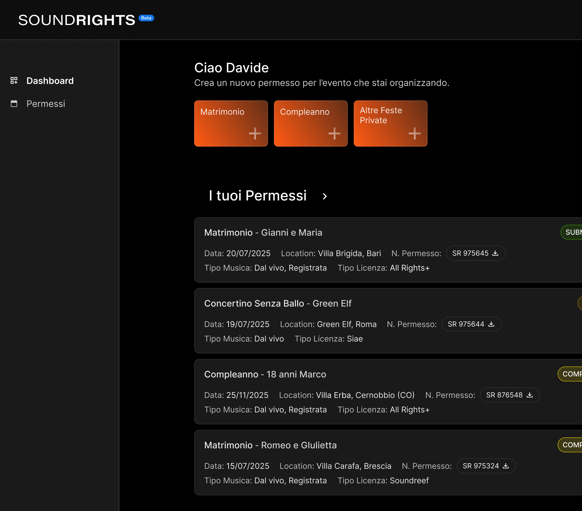 Compili una sola volta, con un solo flusso, e Soundrights si occupa di inoltrare automaticamente ciò che serve agli enti competenti. Sei in regola senza dover studiare normative diverse o gestire più moduli.